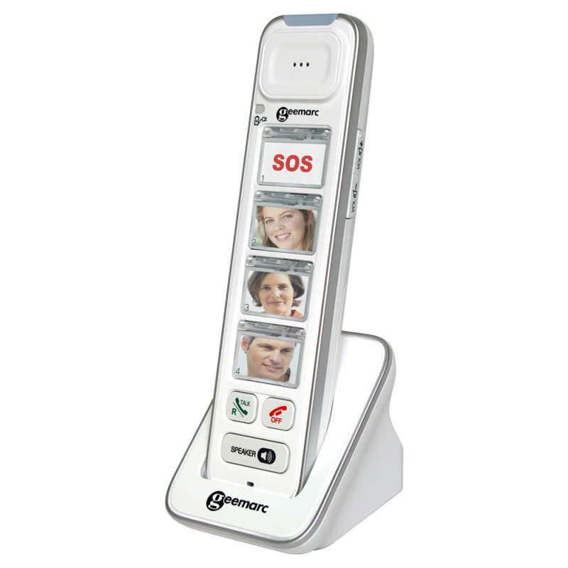 - Téléphone fixe sans fil amplifié : idéal pour une personne qui reste principalement à domicile.